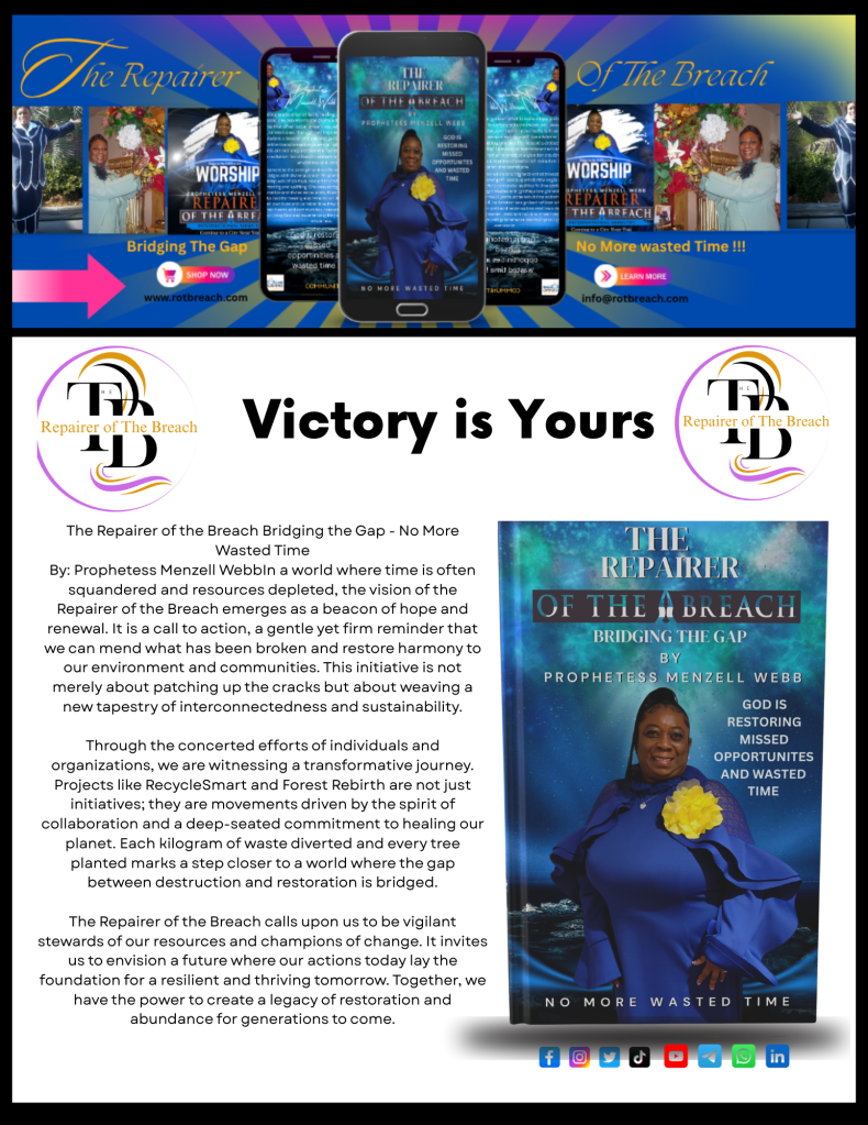 The Repairer of the Breach aims to bridge gaps in relationships, marriages, sins, and generational curses for His people through Jesus Christ.With a foundation built on love, forgiveness, and understanding, this mission seeks to restore harmony and peace in the lives of those who may feel lost or broken. By fostering open communication and empathy, The Repairer of the Breach encourages individuals to confront their pasts and embrace healing. Through the teachings of Jesus Christ, it provides a pathway to redemption, offering hope and renewal. This journey is not just about mending what is broken, but also about building a future grounded in faith, unity, and compassion. As hearts are mended and relationships restored, a ripple effect of positivity and grace spreads, touching lives and communities far and wide.